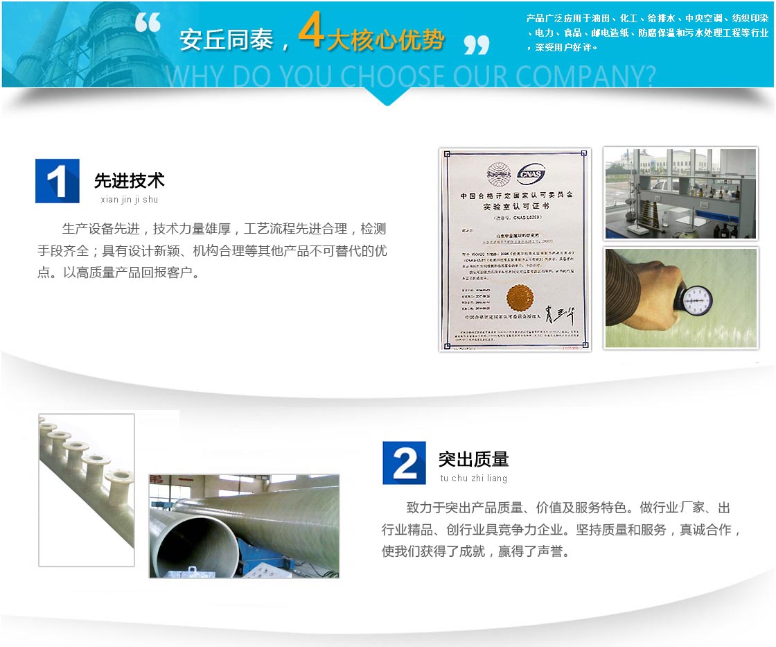 本公司產(chǎn)品有:各種規(guī)格復(fù)合玻璃鋼管道、管件、夾砂管道、電纜管道、通風(fēng)管道、壓力管道、玻璃鋼罐、儲(chǔ)存罐、運(yùn)輸罐、化工設(shè)備罐、圓形...